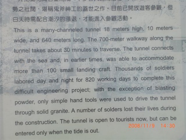 As I left Beigan, I didn't book the hostel in advance for the night as I didn't make any plans of my journey. Of course I got some ideas in mind- wether started from east or west. Anyway, I finally settled myself in Jinsha village (west of the island).Then I walked along the footpath to Iron Fort. It was a major base for military frogmen and an important defense of the island due to its shape and strategic location(according to David Hsu, China post 2006 July)